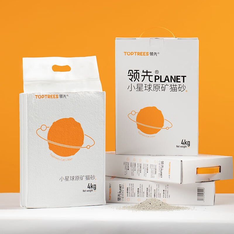 Toptrees领先小星球天然原矿猫砂混合型膨润土活性炭除臭无尘猫砂 8斤 小星球猫砂 4kg*8包 钠基膨润土
