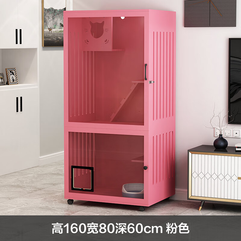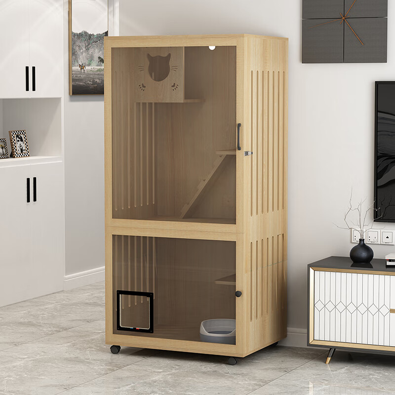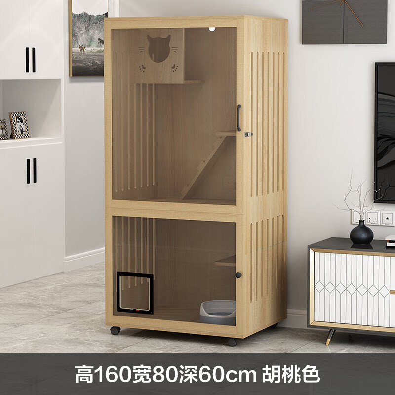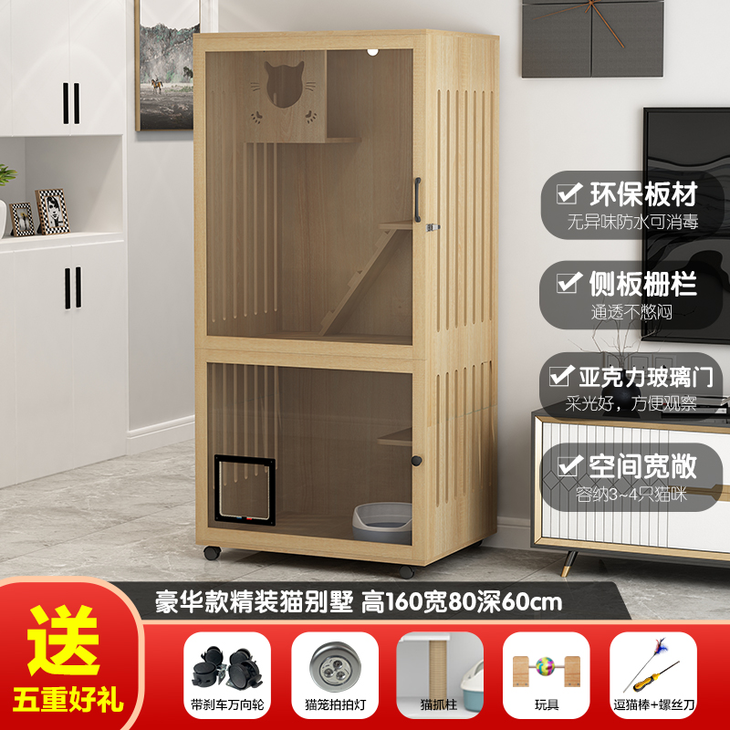 七夕旺猫笼子 实木生态猫别墅 猫笼木质 猫舍猫窝封闭式 防水可擦拭消毒 高160宽80深60原木色(三色可选)