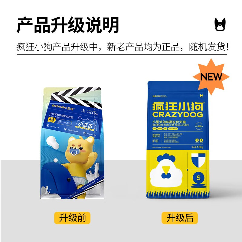 疯狂小狗 狗粮小型犬幼犬成犬泰迪贵宾博美比熊通用型肉粒双拼粮 小蓝包幼犬粮1.5kg