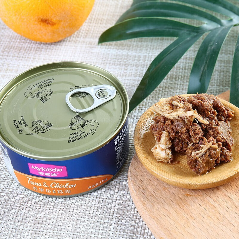 麦富迪(Myfoodie)猫罐头 猫粮猫湿粮肉粒包 鱼肉水煮高肉大罐头170g/罐 (吞拿鱼 鸡肉)170g*24罐