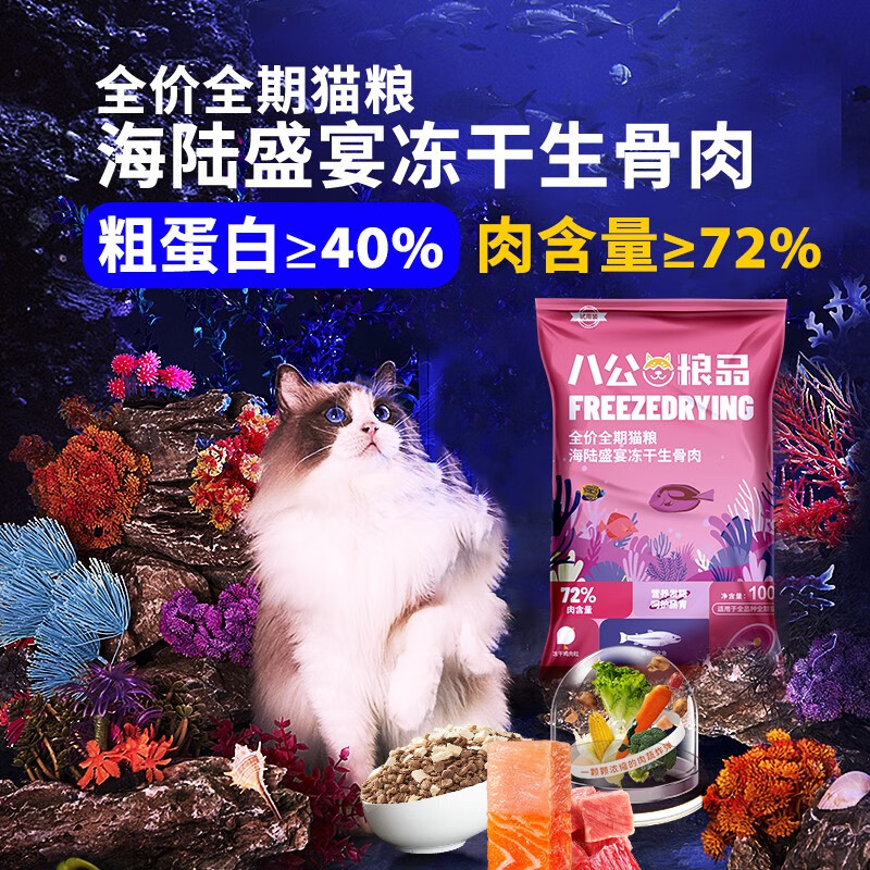 八公粮品 益生菌鲜肉猫粮全价通用成猫益生菌添加宠物猫粮 冻干猫粮试吃装200g