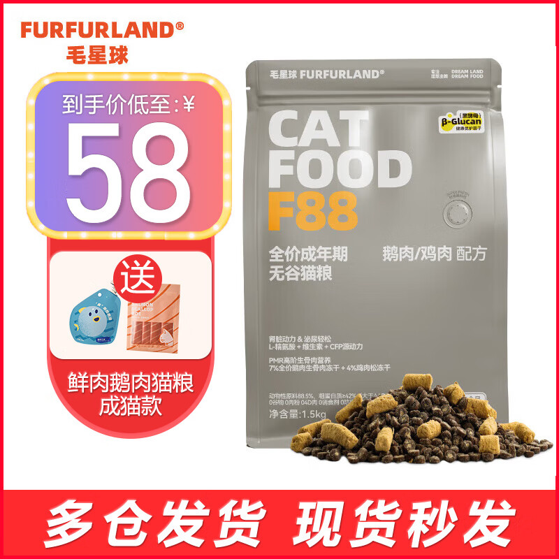 毛星球无谷冻干猫粮成猫全价生骨肉鹅肉鸡肉猫粮增肥发腮1.5kg 【鹅肉 鸡肉】成猫粮1.5kg