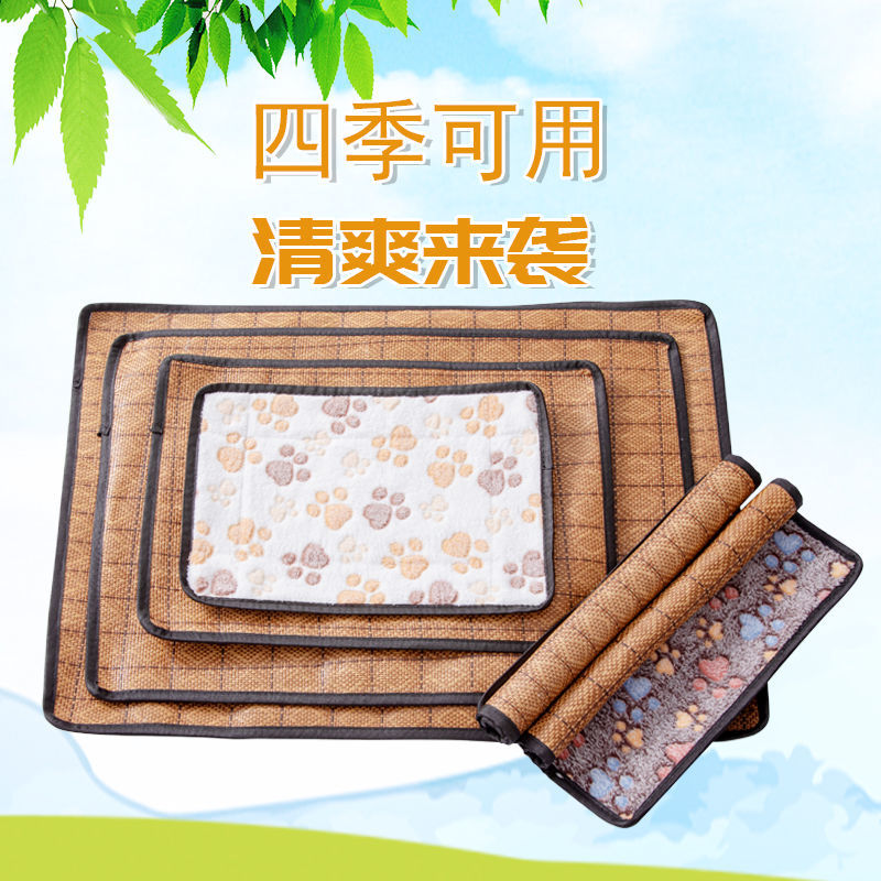 宠物四季垫子狗狗凉席春季降温猫咪不粘毛猫狗窝垫睡觉垫夏季猫窝 夏季两面垫(深咖脚印) XS-35*25CM(0-1斤新生猫