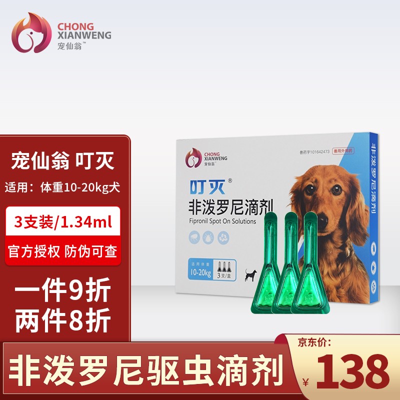 宠仙翁叮灭宠物中大型犬狗狗 体外驱虫滴剂 非泼罗尼驱虫药虱子跳蚤 1.34ml 中型犬10-20KG(整盒3支)