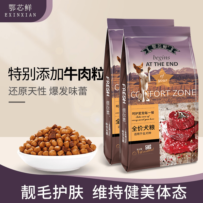 【不吃包退】鄂芯鲜狗粮40斤装成犬幼犬通用型金毛拉布拉多全犬种适用 添加肉粒|全价全期犬粮10kg