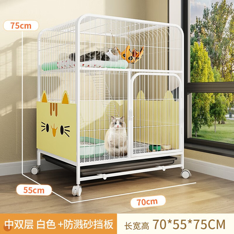 蔻丝猫笼子超大号家用猫窝别墅带厕所一体适合大猫室内防外溅猫舍猫笼 白 中双层【70_55_75】防溅砂 【新手款】猫砂盆 猫砂铲 玩乐款
