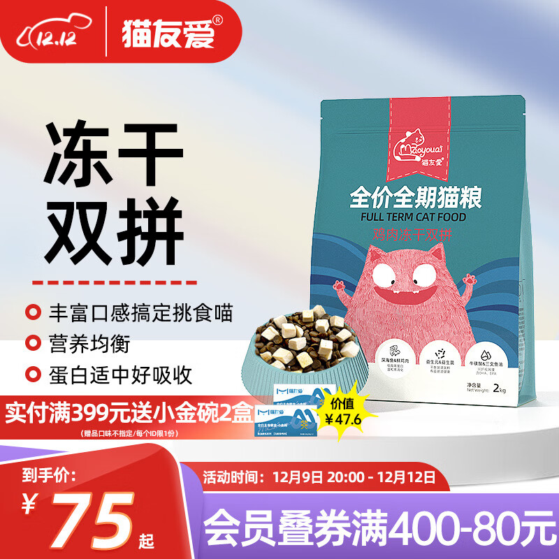 猫友爱冻干双拼猫粮成猫幼猫全价营养鸡肉鳕鱼全阶段猫咪主粮 鸡肉冻干双拼6kg