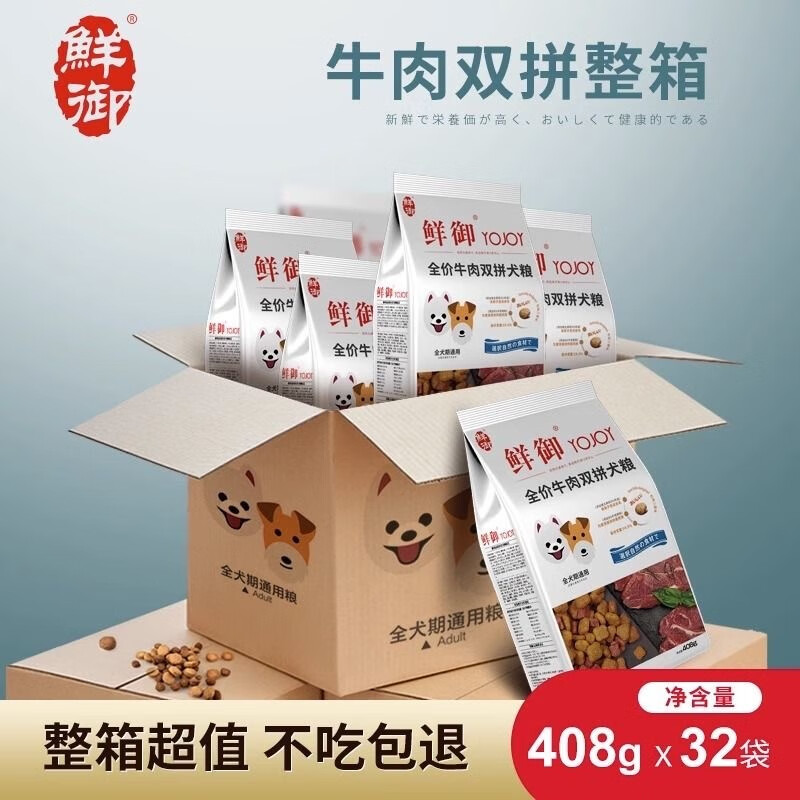 鲜御牛肉双拼狗粮泰迪用狗粮雪纳瑞吉幼犬成犬通用型408g*6包装牛肉味 牛肉双拼408g*32包整箱