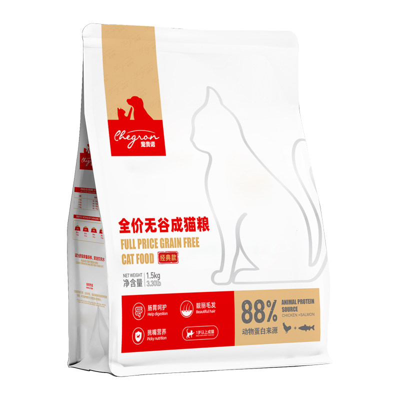 【买1送1】宠贵诺 成猫猫咪专用猫粮10全价无谷增肥发腮通用3斤装