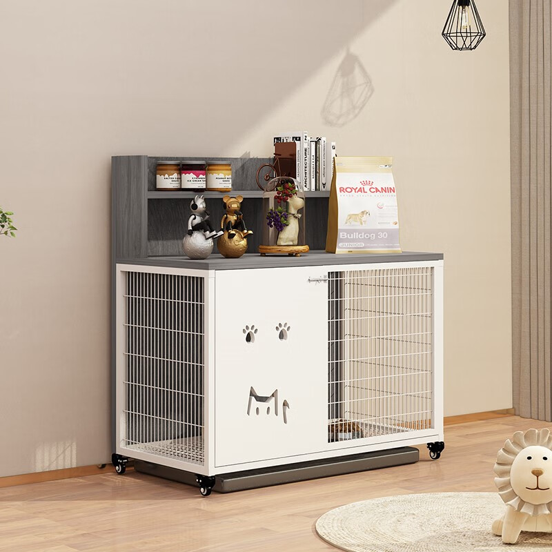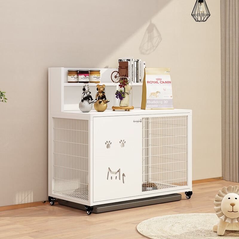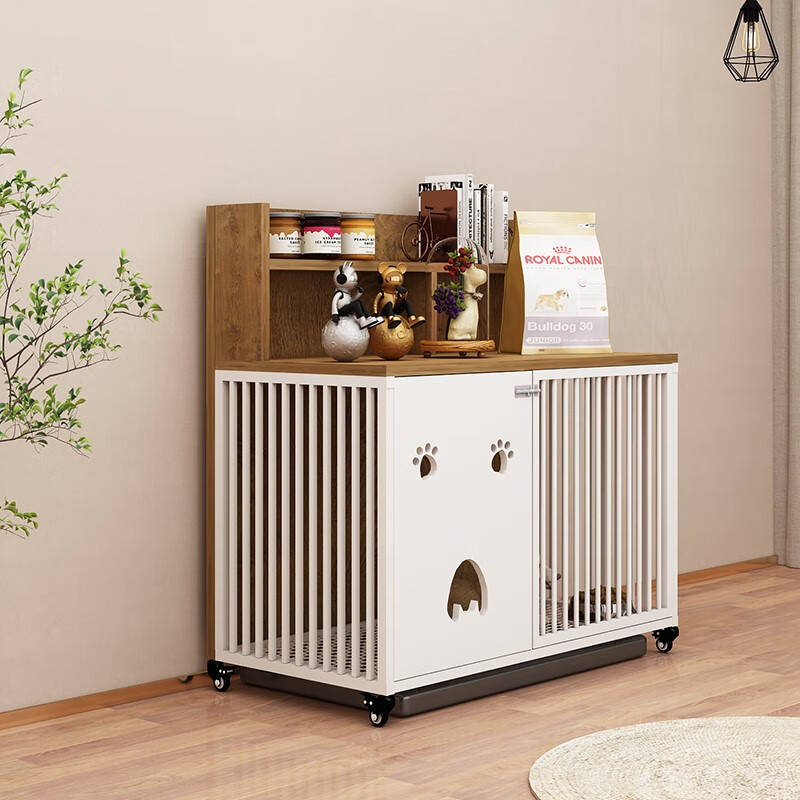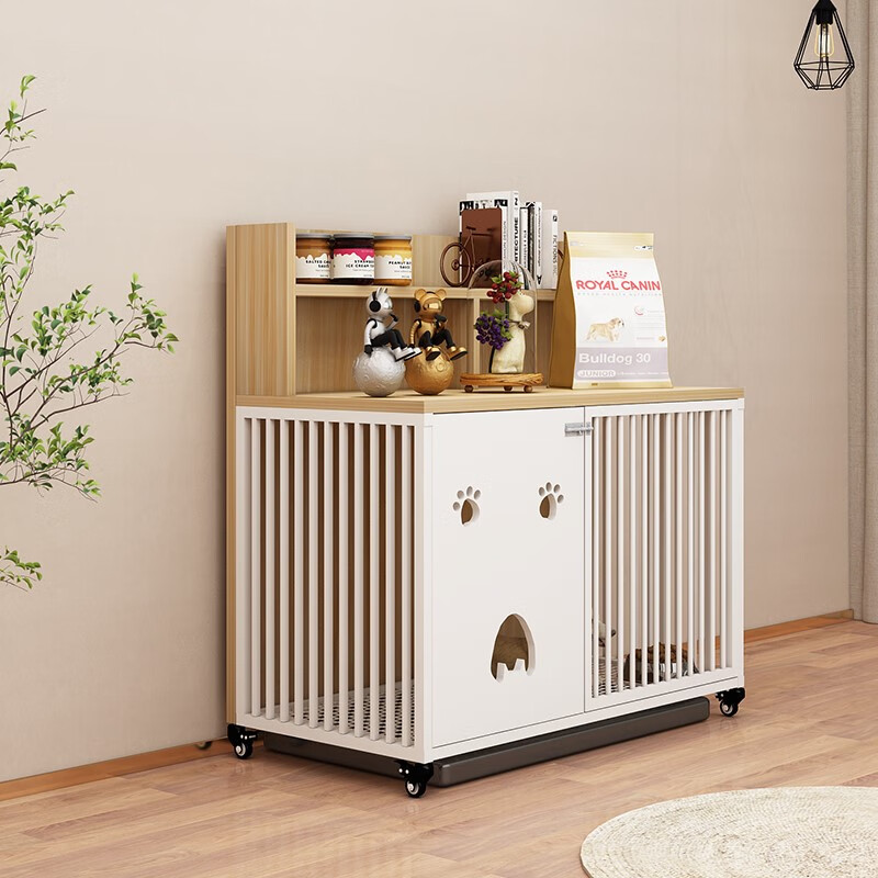 勋粑狸宠物狗笼中型犬大型犬带厕所小型犬室内外金毛边牧泰迪拉布拉多 白色木质柜体 铁艺栅栏门(狗头 XS-超小型64*45*6015斤以内