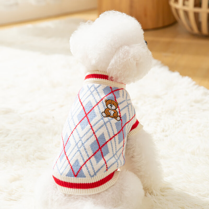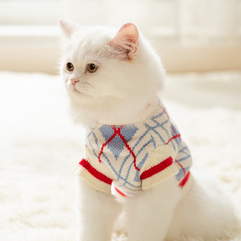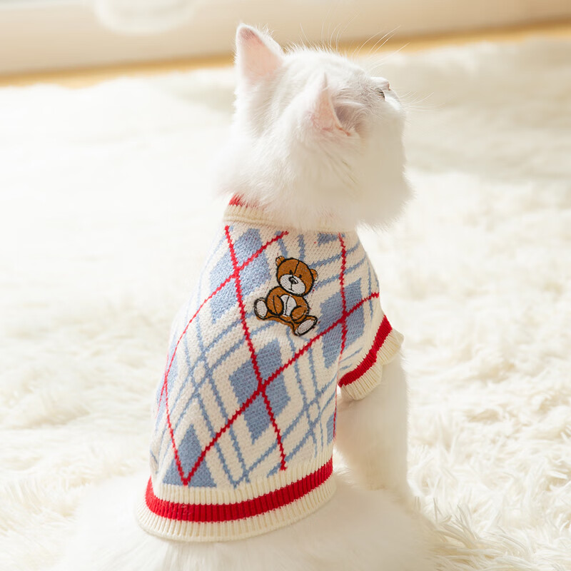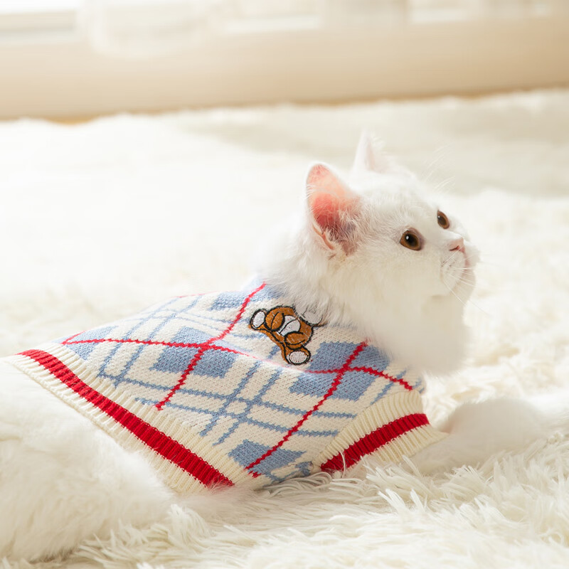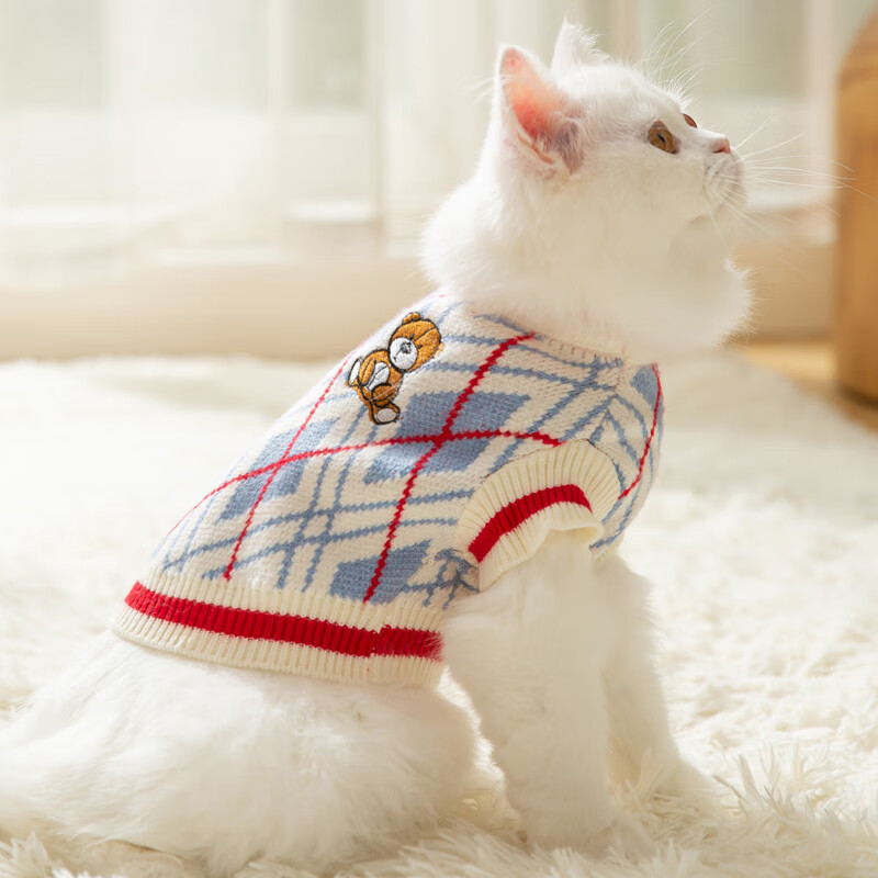猫米小熊无袖猫咪毛衣秋冬季布偶猫蓝猫小猫猫宠物泰迪小狗狗衣服冬天 菱格纹毛衣 XS(建议体重1-3斤)