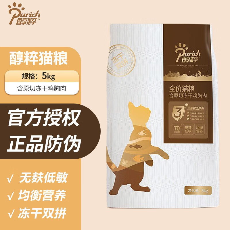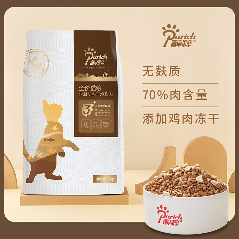 醇粹金标全价猫粮 原切冻干鸡胸肉 均衡营养成猫幼猫通用型猫粮 金标全价猫粮 5kg