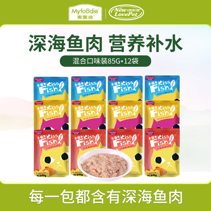 麦富迪麦富迪亲嘴鱼猫湿粮软罐头妙鲜封肉粒包 混合装85G*12袋