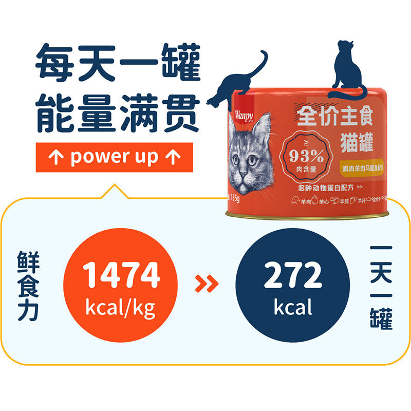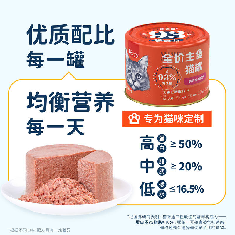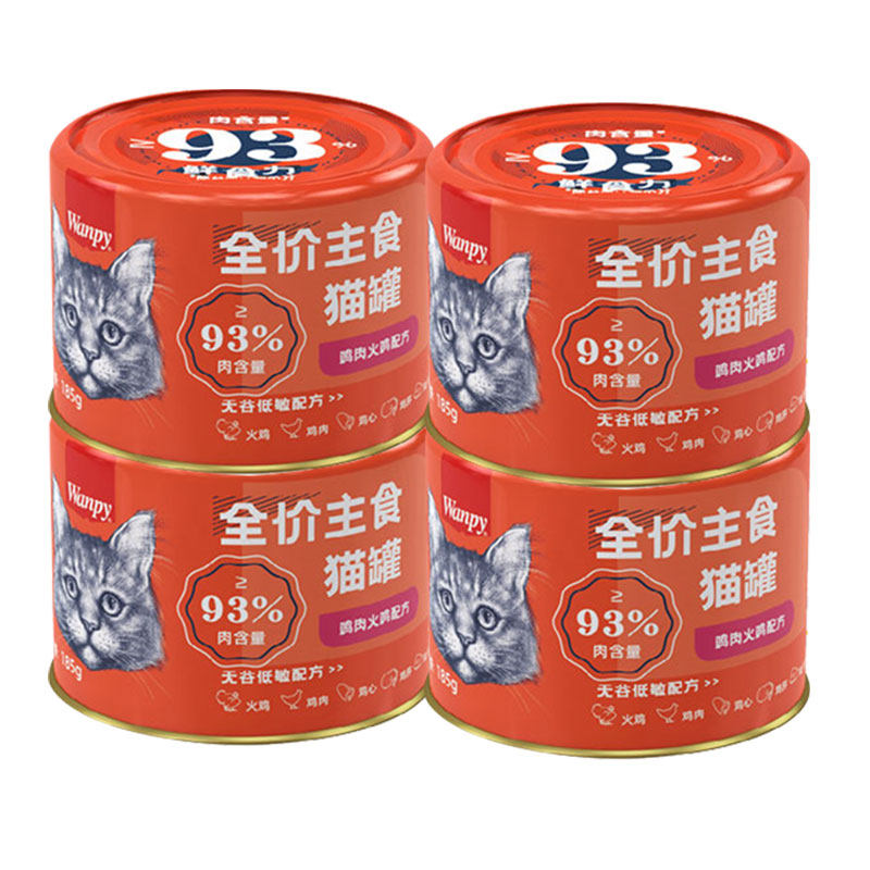 wanpy顽皮鲜食力猫咪主食罐185g*4罐成猫幼猫罐头零食营养高蛋白