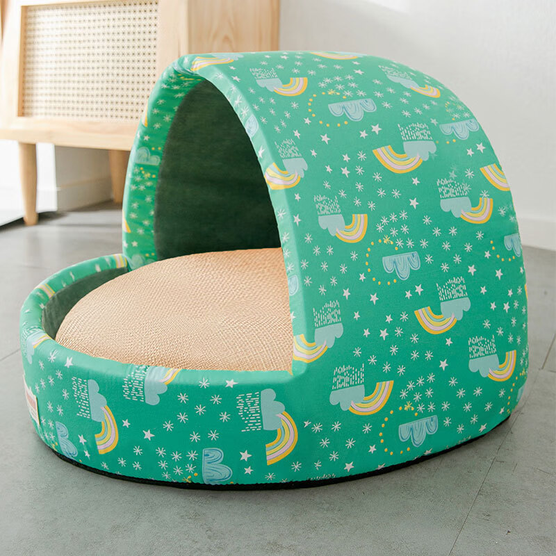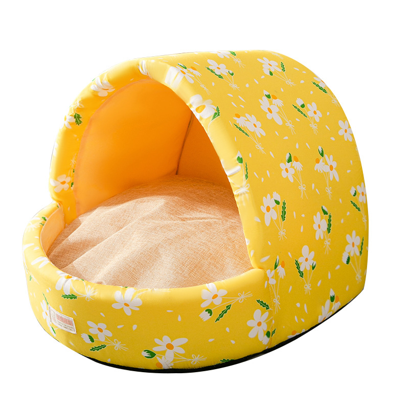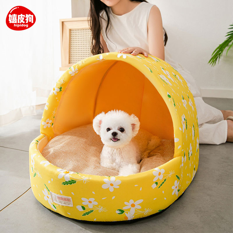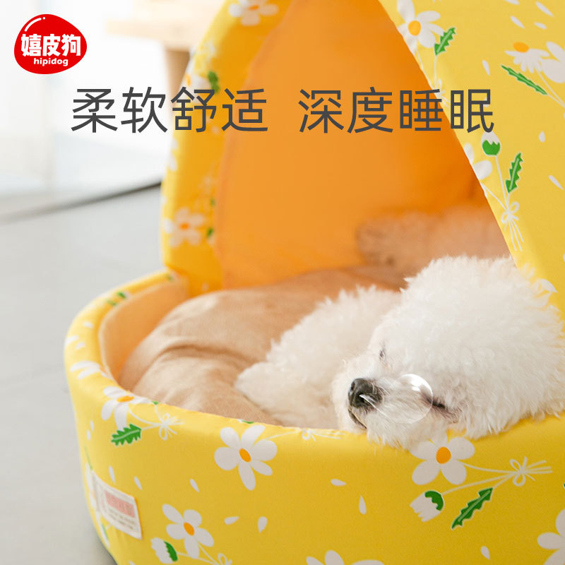 嬉皮狗狗窝四季通用狗狗蒙古包窝泰迪博美狗屋半封闭小型犬猫咪窝狗房子 暖黄色小碎花 S-小型【适用5斤以内】