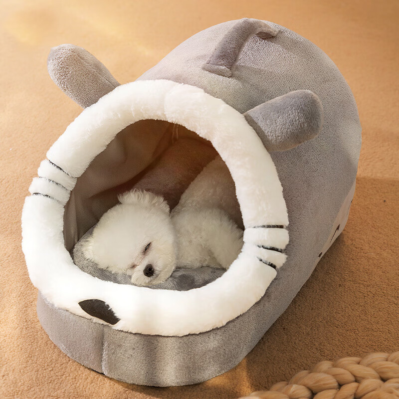 嬉皮狗(hipidog)狗窝四季通用狗狗床小狗冬季保暖网红不可拆洗封闭式猫窝睡觉用品 灰色龙猫 M#46*32*30cm(建议体重15斤内)