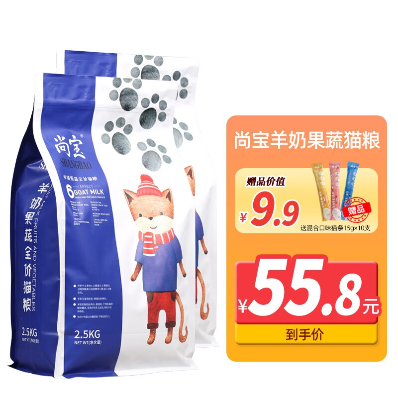 尚宝猫粮成猫粮5斤装猫粮幼猫猫咪用品英短蓝猫橘猫全价猫粮2.5kg 【羊奶果蔬】全价猫粮2.5kg*2