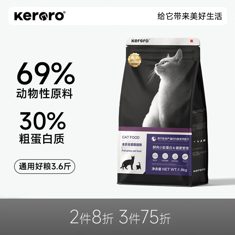 可噜噜(keroro)猫粮冻干1.8kg/3.6斤成猫幼猫粮全猫咪通用公益天然粮全价猫粮 新【添加鸡肉沫】冻干猫粮3.6斤 通用