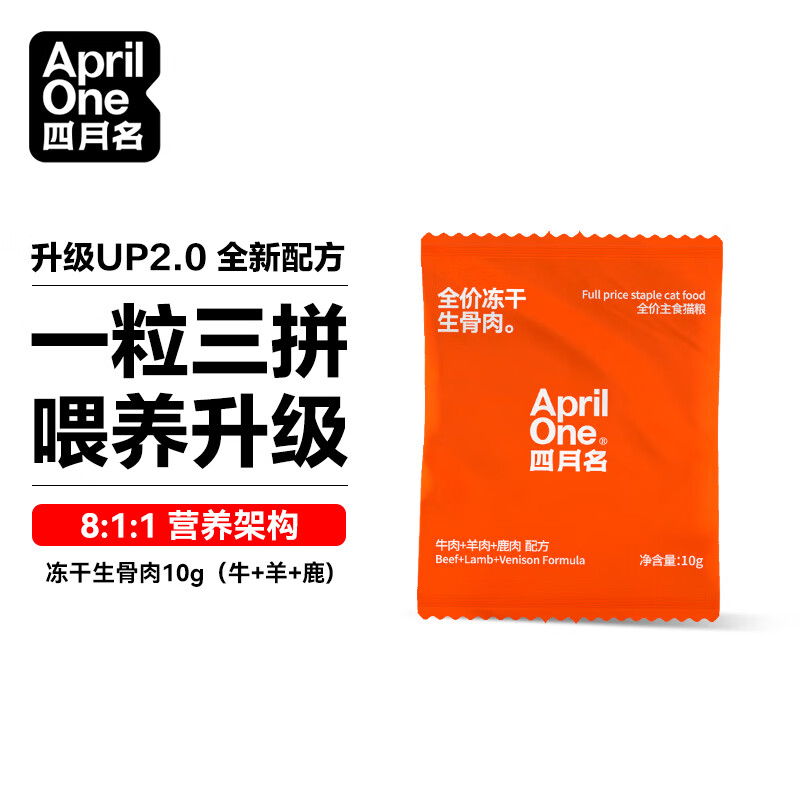 四月名全价生骨肉冻干10克小袋装次抛全阶段主食冻干3拼营养全阶段猫粮 牛肉 羊肉 鹿肉 10g