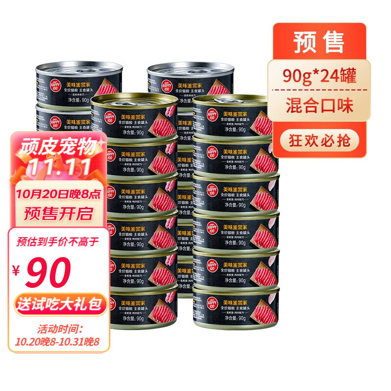 顽皮(Wanpy)猫主食罐头成猫幼猫湿粮猫咪补水美味鉴赏家90g 【预售】混合口味24罐