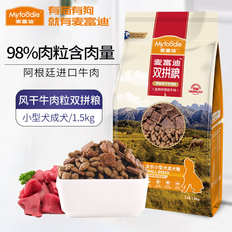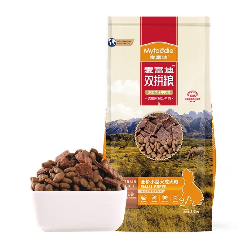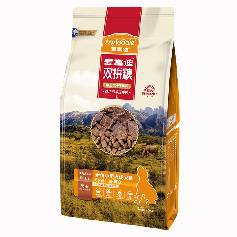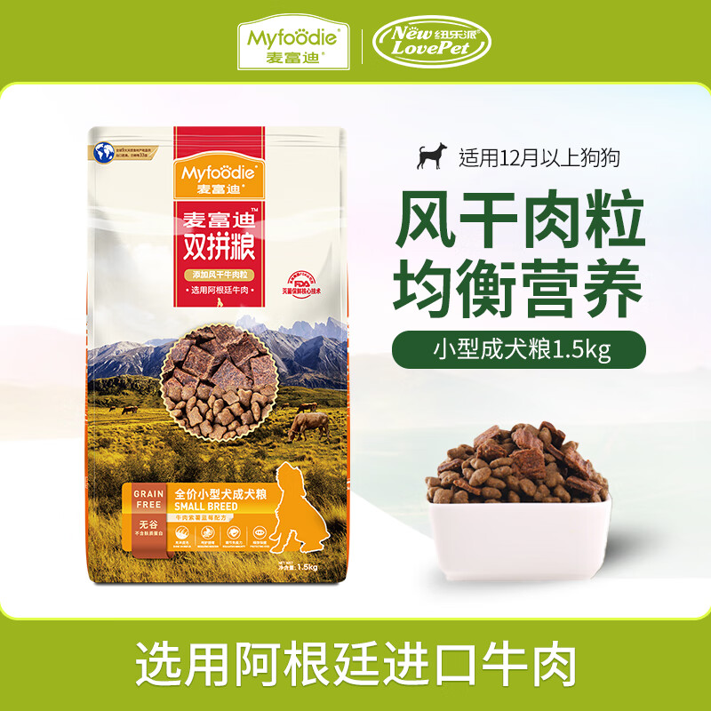麦富迪狗粮 贵宾金毛无谷粮风干牛肉双拼成犬粮 小型犬成犬1.5KG【临期】