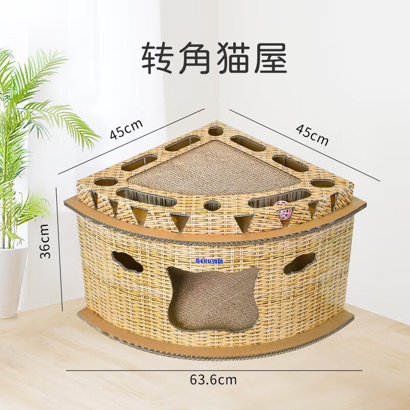 猫抓板猫窝耐磨不掉屑磨爪器耐用猫爪屋瓦楞纸猫咪房子宠物玩具 转角猫屋