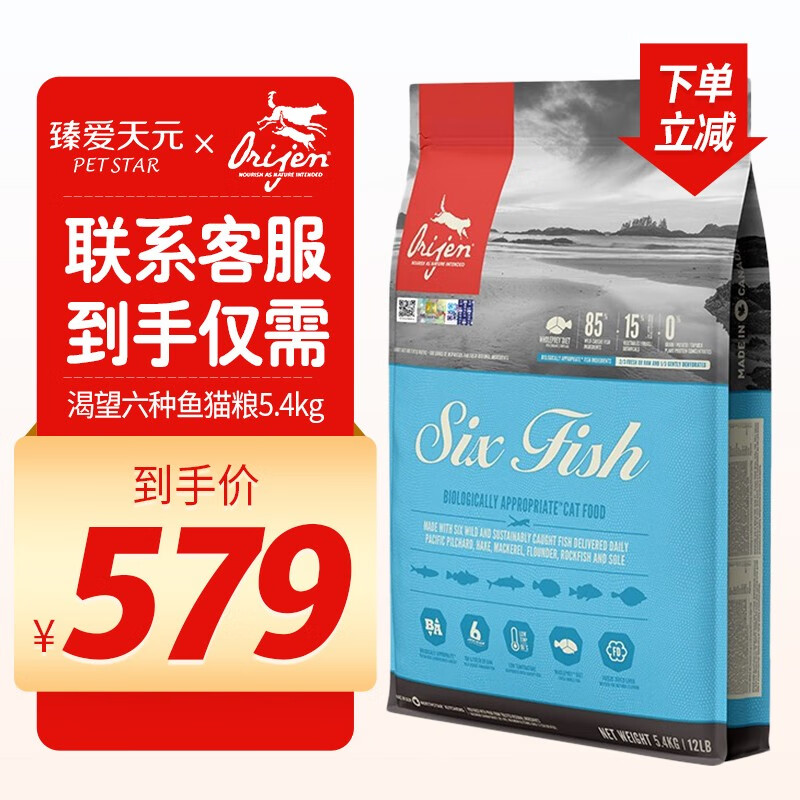 原始猎食渴望(ORIJEN)猫粮原装进口猫粮成猫天然无谷猫干粮鸡肉味 六种鱼猫粮5.4kg 效期2023/9/16