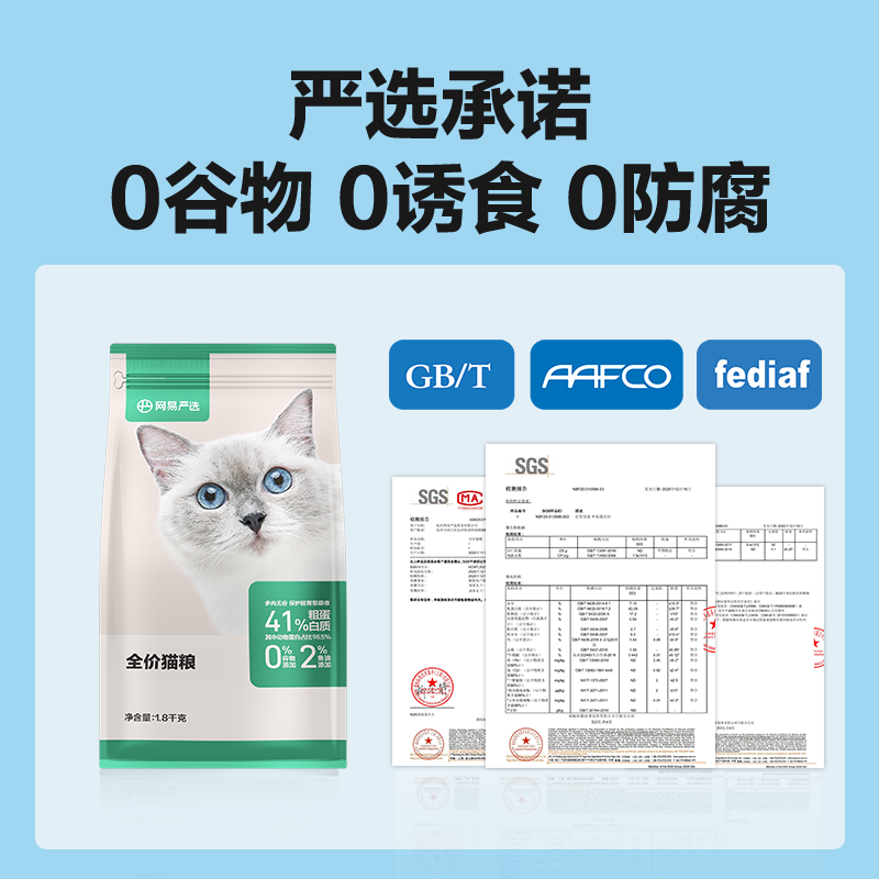 网易严选全价猫粮 七种鱼 鸡肉幼猫成猫通用宠物猫主粮猫咪食品 全价猫粮试吃120g