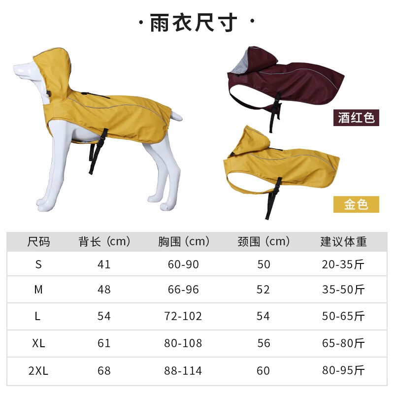 ISPET狗狗雨衣中大型犬宠物雨衣柴犬金毛拉布拉多柯基萨摩耶雨披 酒红色 2XL