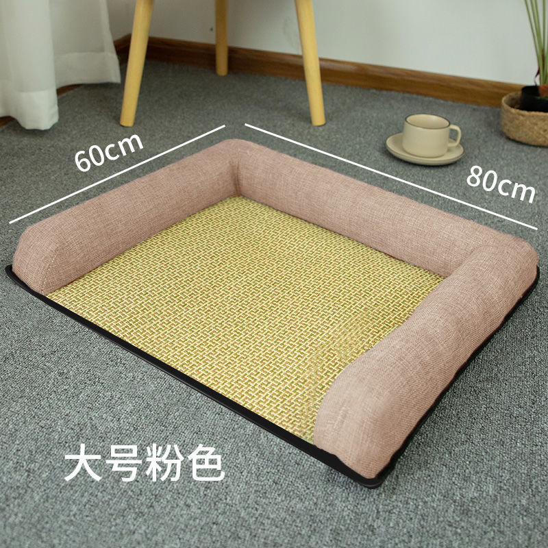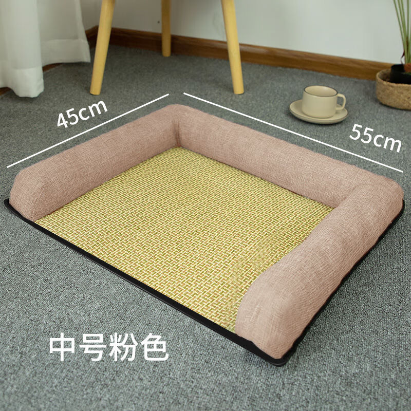 可淘气猫窝夏季夏天藤编凉窝四季通用垫子狗窝凉席中小型犬泰迪宠物用品 三枕【清新粉色】 中码 55cm*45cm【20斤内】