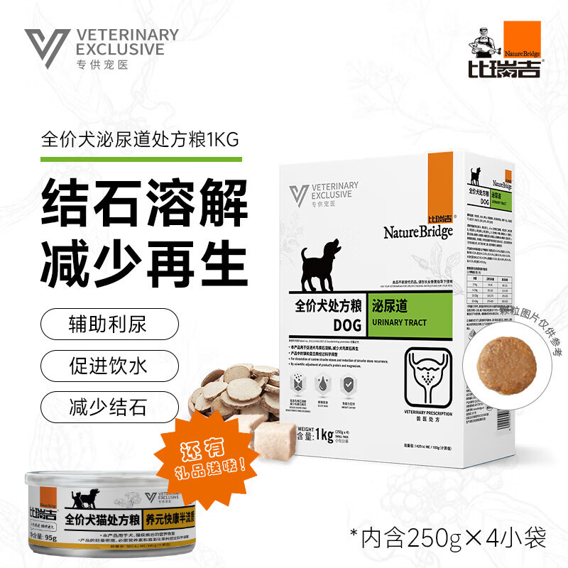 比瑞吉泌尿处方粮成犬泌尿道添加车前子尿路感染结石辅助利尿狗粮 1kg【整盒内含4小包】