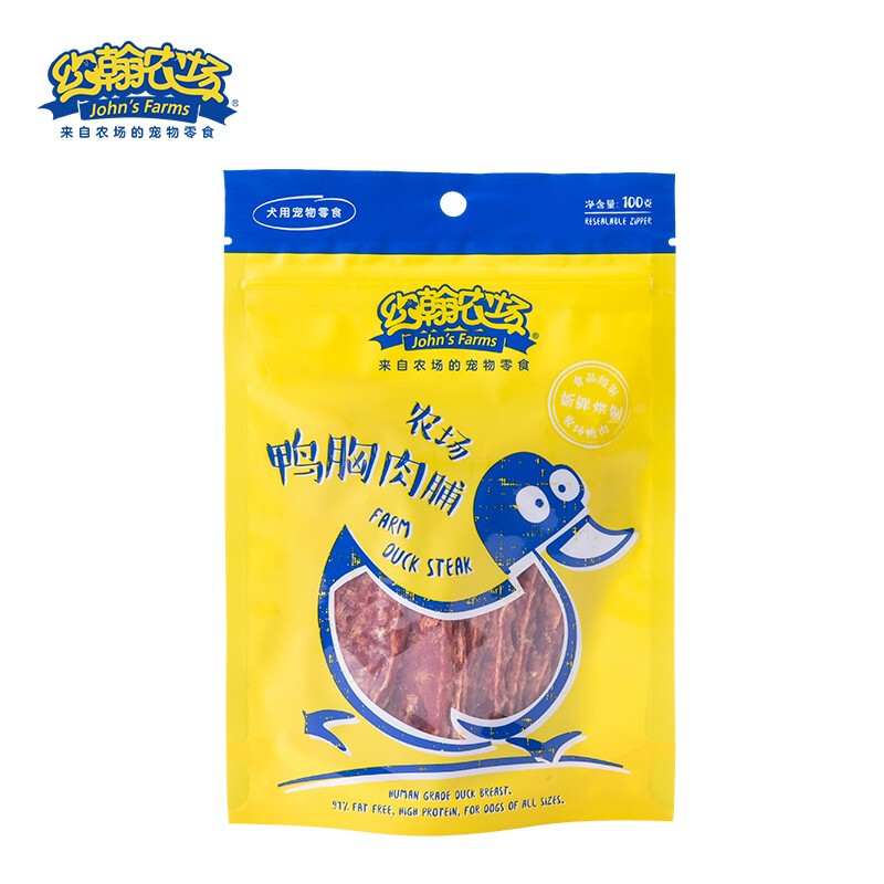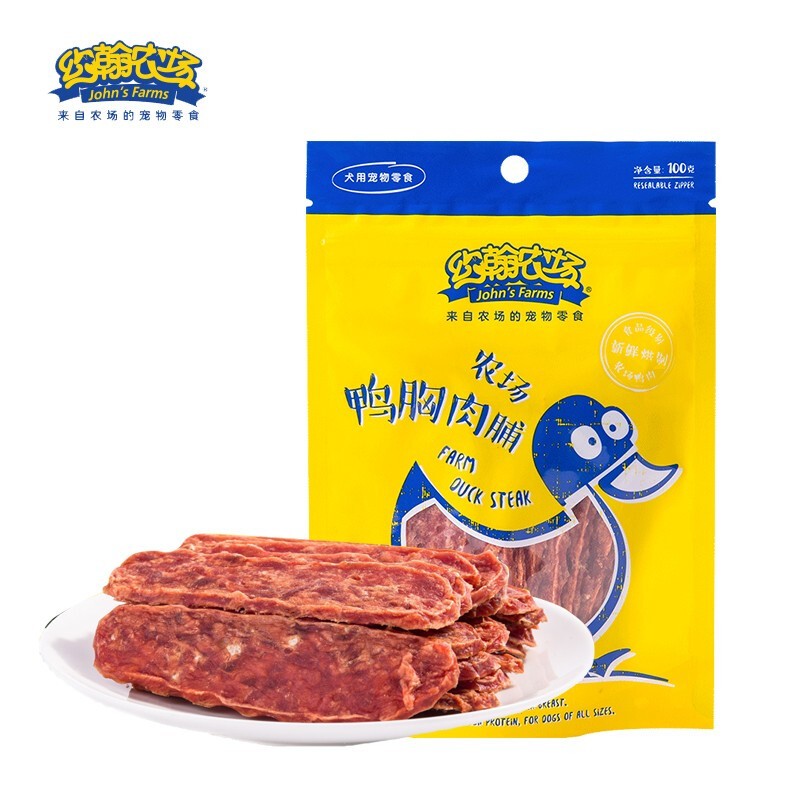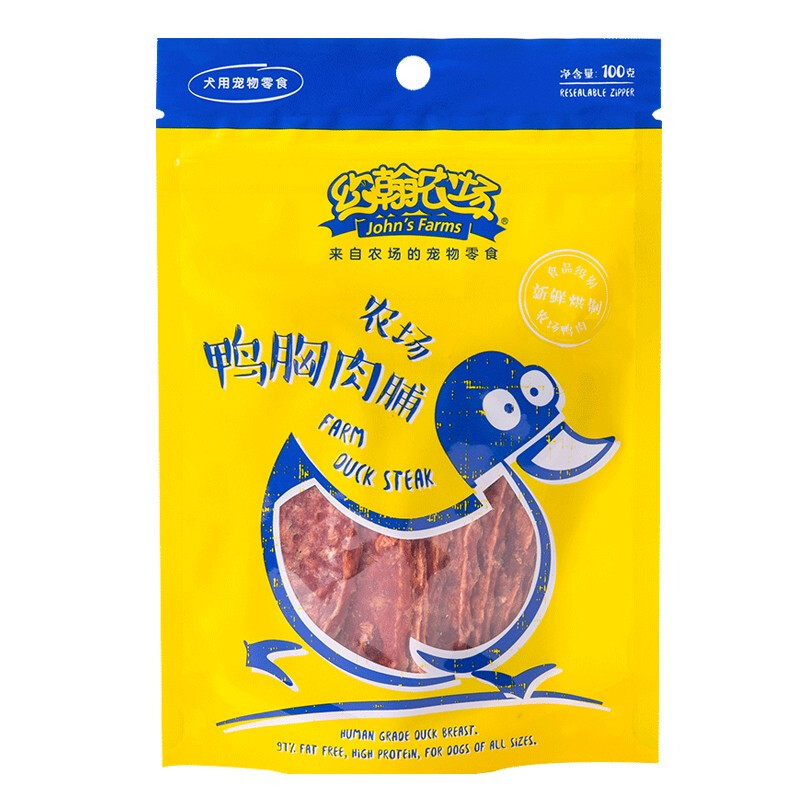 约翰农场狗狗零食大礼包宠物训犬鸡胸肉干泰迪博美金毛幼犬洁齿磨牙肉干 鸭胸肉脯100g