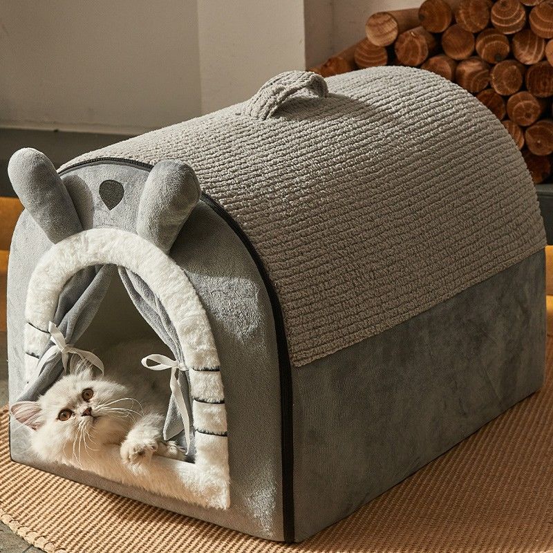 殊福傢猫窝冬季保暖可拆洗猫屋封闭式房子别墅泰迪窝小型犬狗窝四季通用 棕色 小熊窝 全可拆 整窝不变形 小号【适用7斤内宠物】猫狗通用