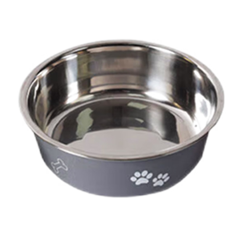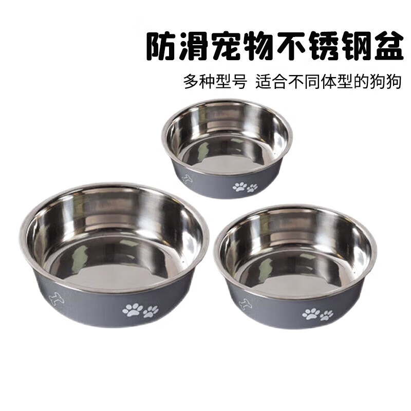 宠六一 狗碗 猫碗 宠物双层不锈钢食碗水碗 猫咪狗狗防滑耐摔 防打翻 一个灰色 直径20cm