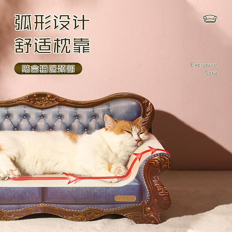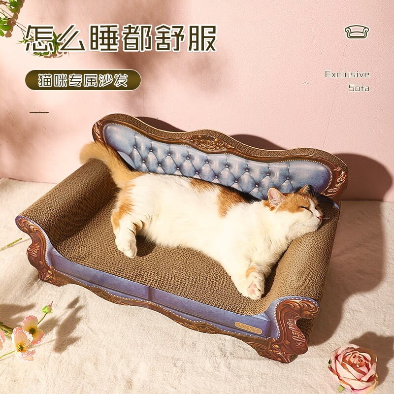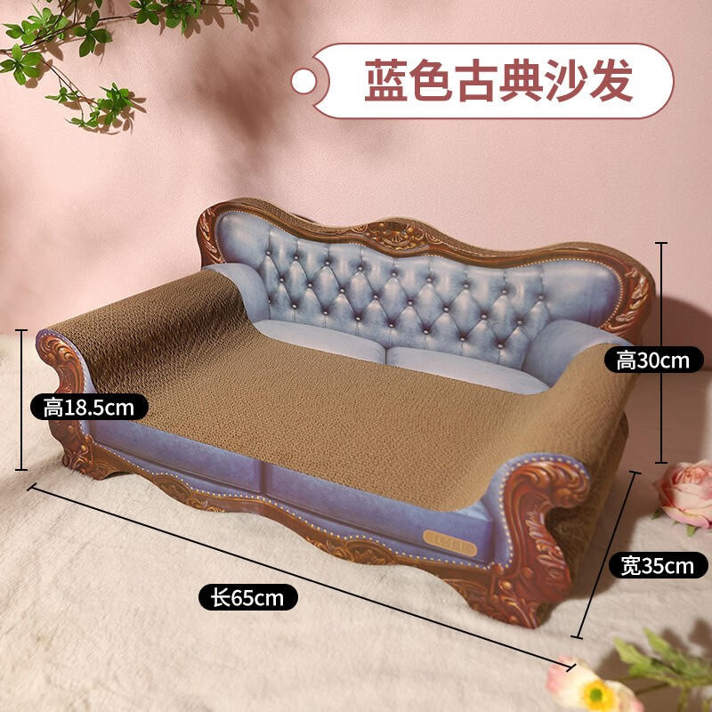 hoopet猫抓板猫窝猫床磨爪板贵妃椅沙磨爪器大号超大瓦楞纸保护沙发防猫抓神器猫咪玩具用品猫爪板圣诞 蓝色古典沙发