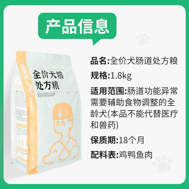兽医张旭 狗粮肠道处方粮 调理肠胃易消化 大小型犬成犬幼犬泰迪金毛拉布拉多通用型 全价配方狗粮犬粮 10kg