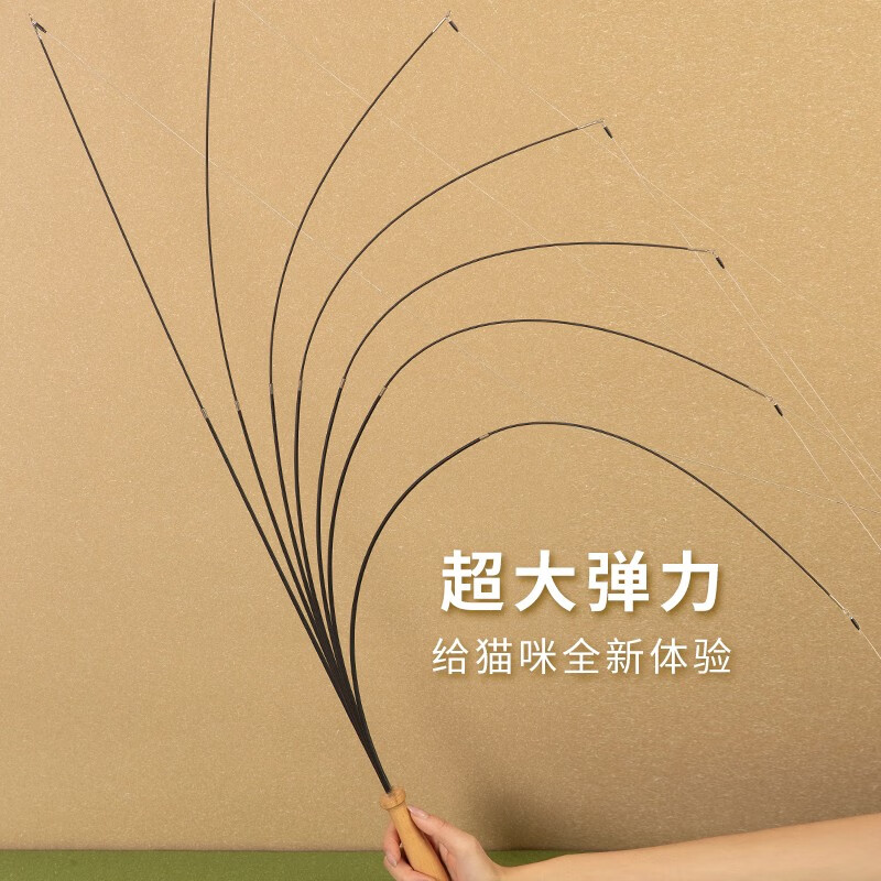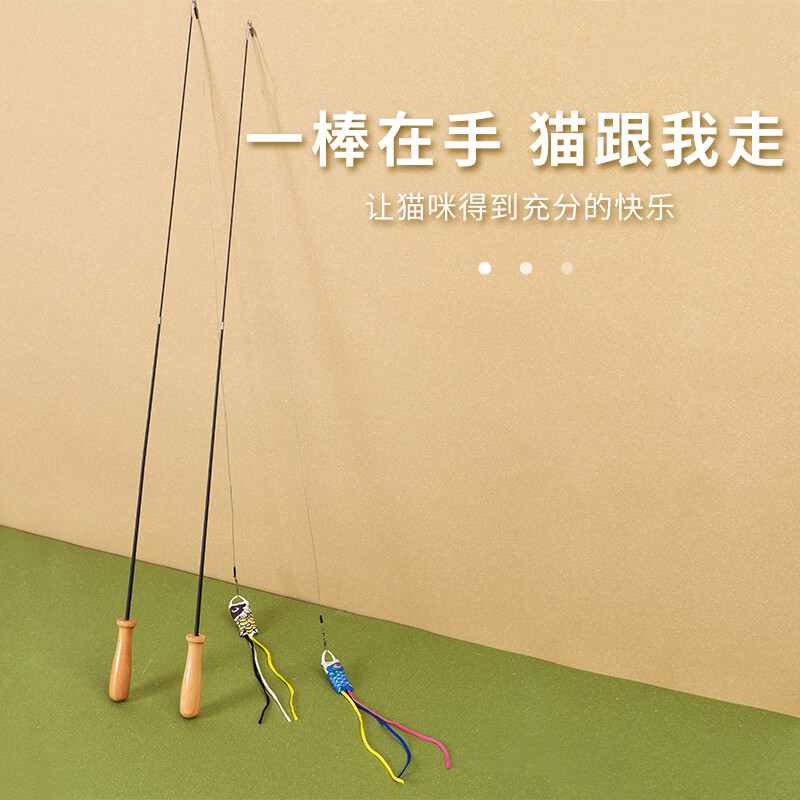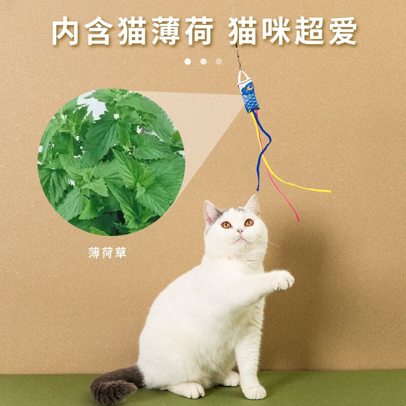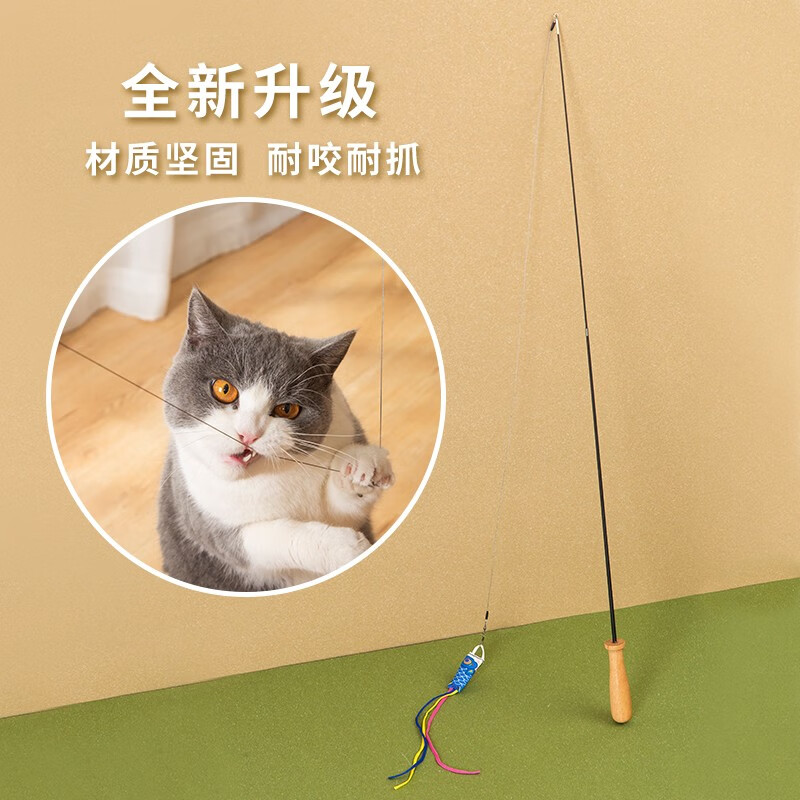 NECOSEKAI猫咪世界猫草猫薄荷逗猫棒长杆可伸缩钢丝钓竿柔韧不易断超长钓猫竿耐咬猫咪玩具用品 蓝鱼款逗猫棒