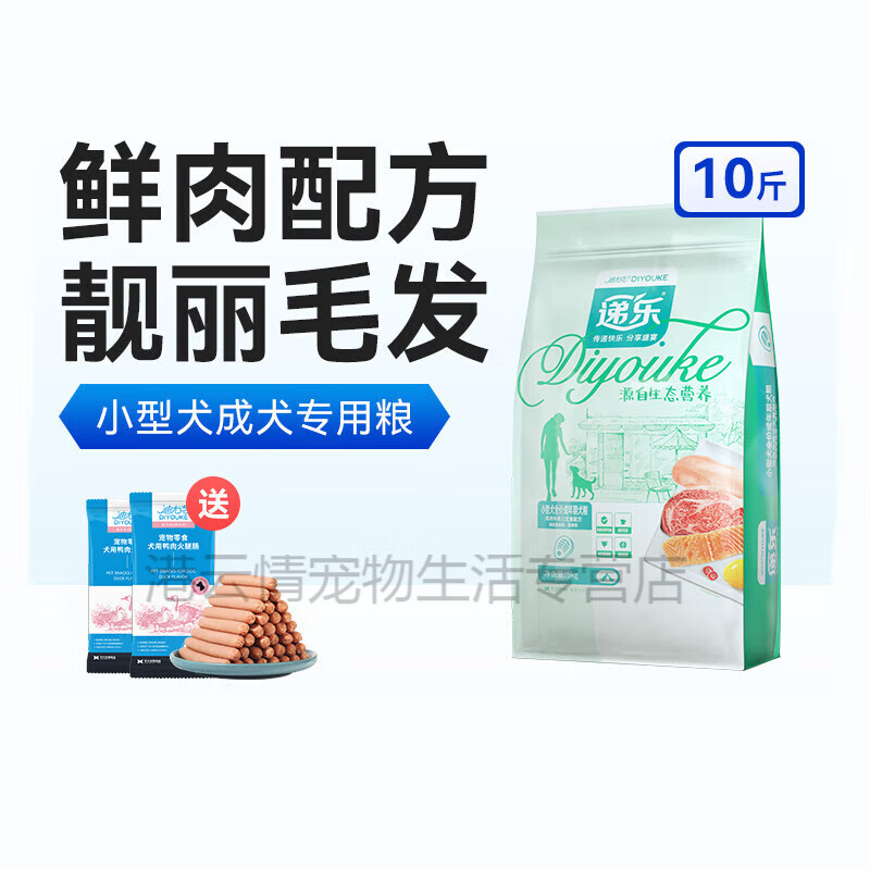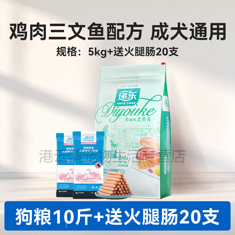迪尤克递乐成犬狗粮通用型5kg10斤柯基泰迪比熊博美小型犬专用粮 小型犬成犬专用 火腿20支 5kg