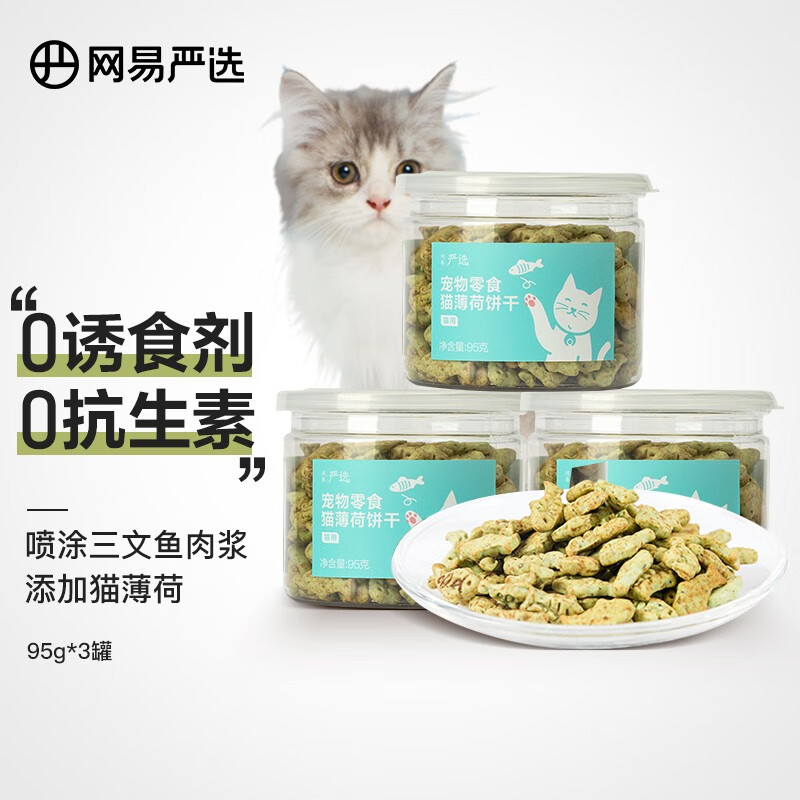网易严选 全价猫粮 幼猫成猫宠物主粮猫咪零食 【猫薄荷饼干】 95g*3罐