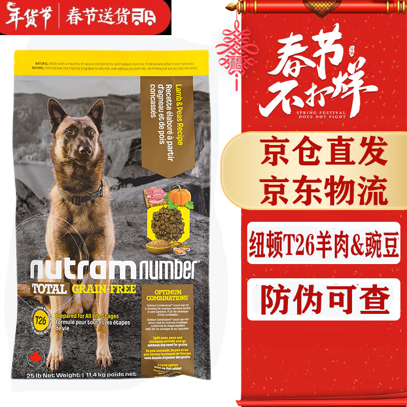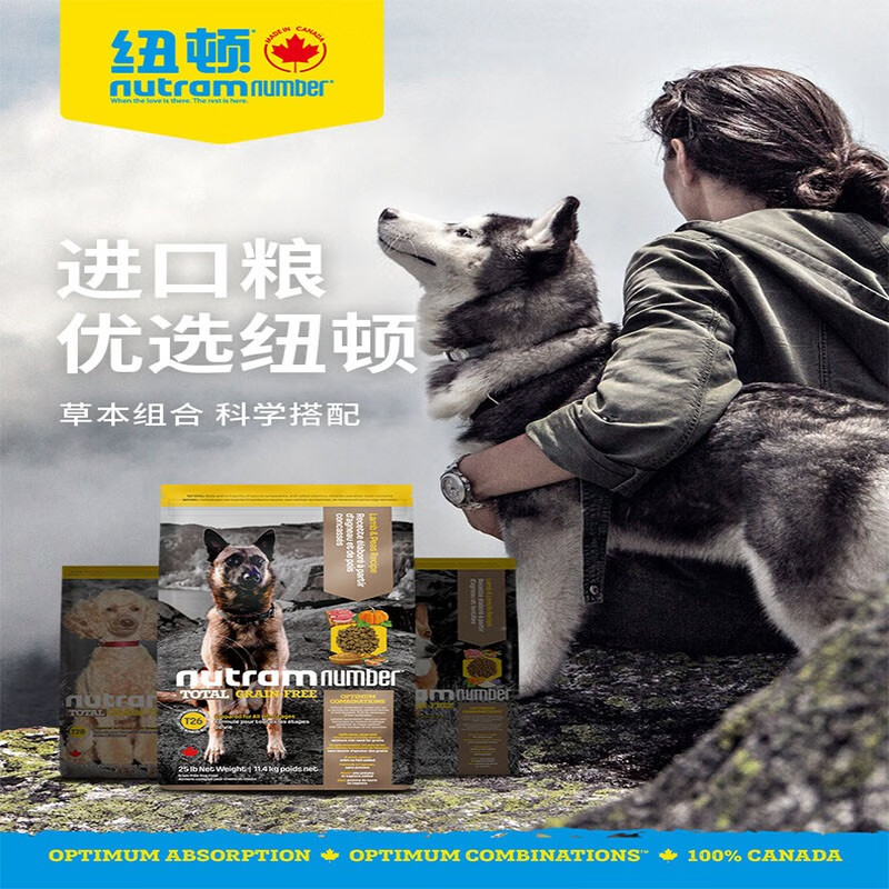 纽顿(Nutram Number)狗粮中大型犬成犬粮S6鸡肉糙米T23鸡肉T25鳟鱼T26羊肉味通用型 T26羊肉兵豆丨11.4KG