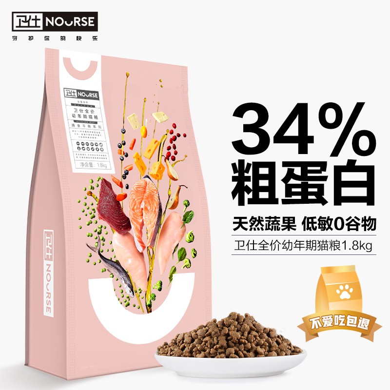 卫仕全价膳食平衡系列无谷配方全价幼猫粮猫干粮小颗粒1.8kg卫士猫粮