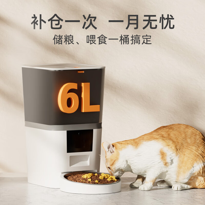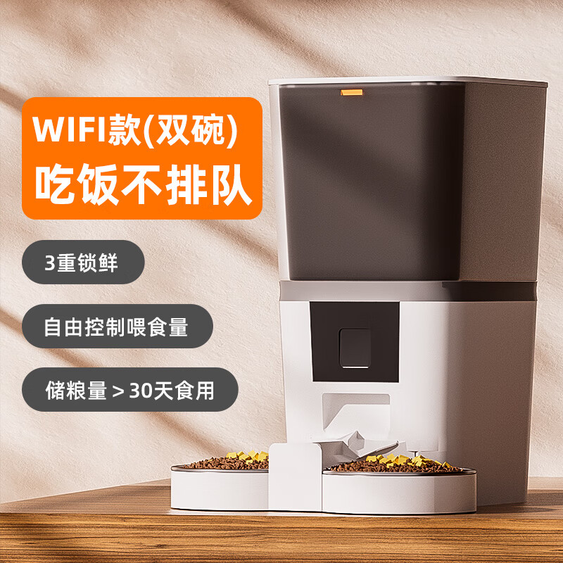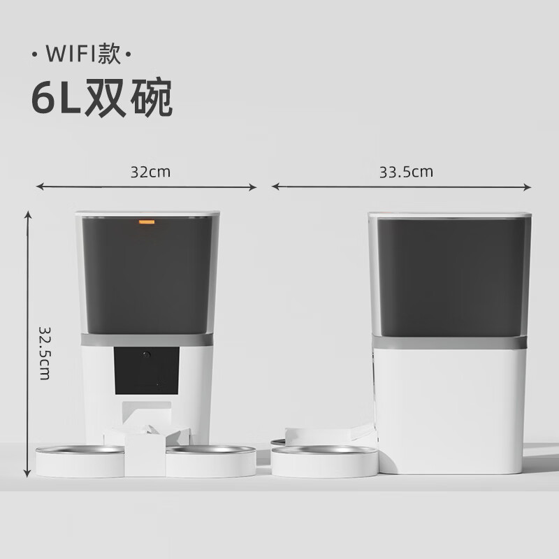 hoopet猫咪智能自动喂食器双碗猫粮狗粮WIFI定时定量喂粮多猫宠物投食机 6L智能喂食器WIFI-双碗