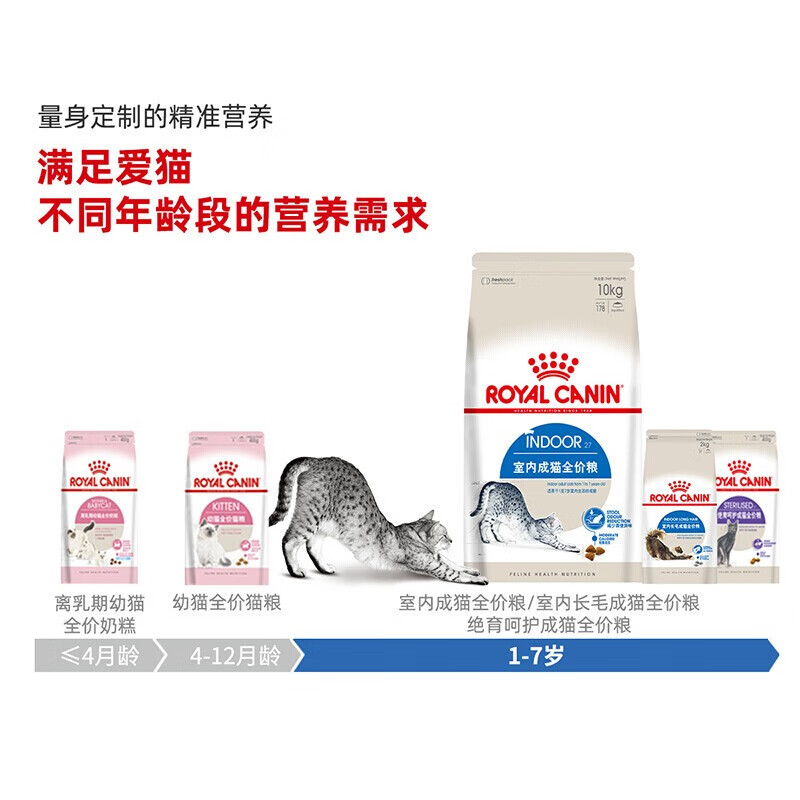 ROYAL CANIN 皇家猫粮F32理想体态 营养成猫猫粮 全价粮2kg优选呵护营养配方 【1岁以上】I27室内成猫粮10kg
