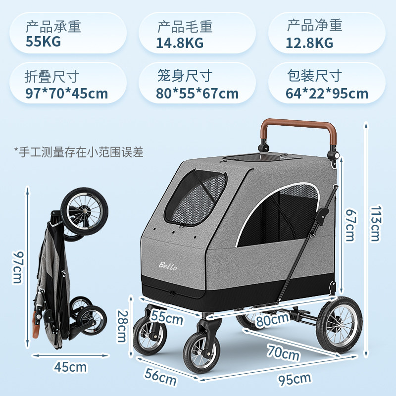 BELLO手推车大型宠物推车大空间多只猫咪狗狗金毛外出行车可折叠