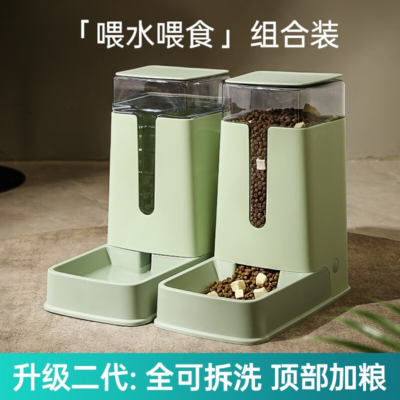 Kimpets猫咪饮水机自动喂食器猫宠物饮水器狗狗喝水器流动水不插电不湿嘴 可视窗组合套装(绿色)