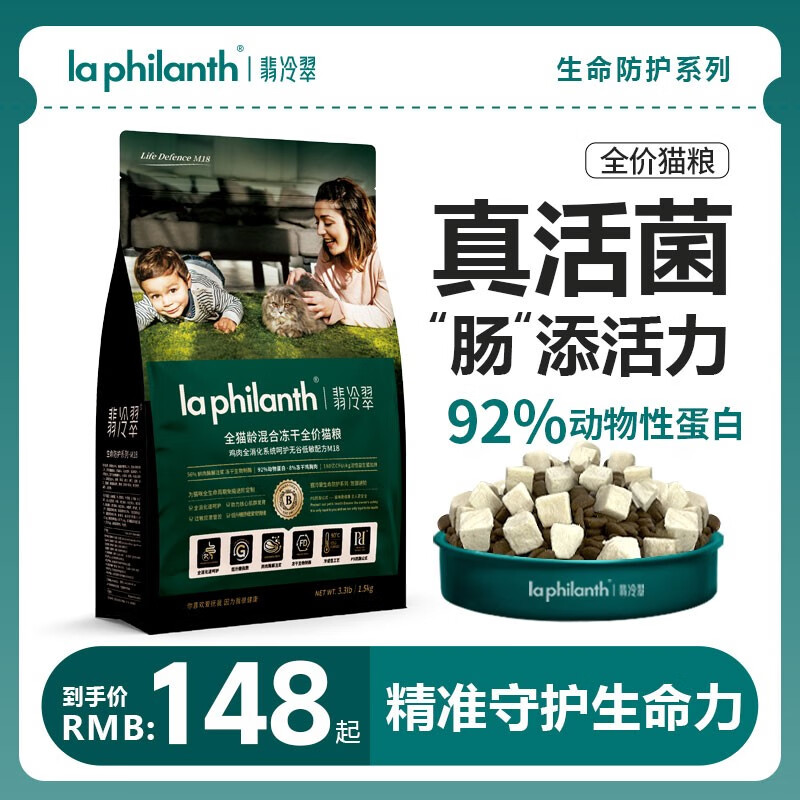 翡冷翠猫粮猫主粮成幼猫通用粮冻干粮全阶段益生菌无谷鸡肉配方M18 M18鸡肉配方1.5Kg装