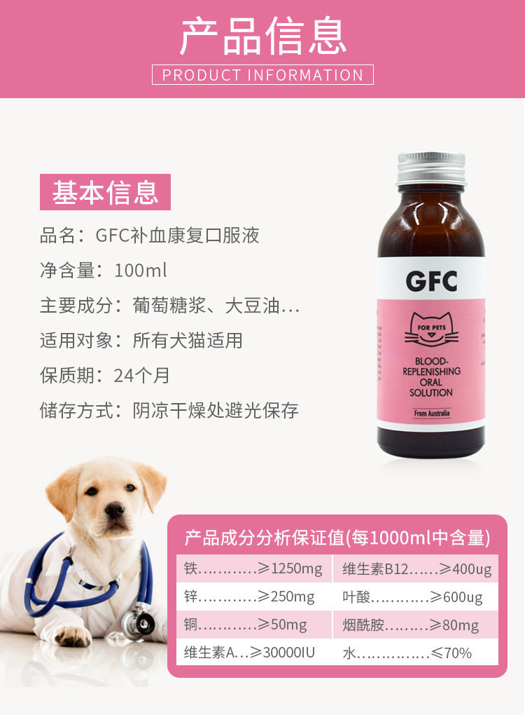 GFC宠物口服液猫咪营养液补血康复调理肠胃猫狗通用100ml