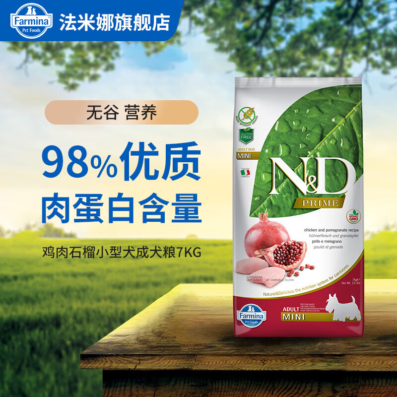 法米娜无谷鸡肉石榴羊肉蓝莓成犬粮意大利进口狗粮 鸡肉石榴中小型7kg效期【24/12】