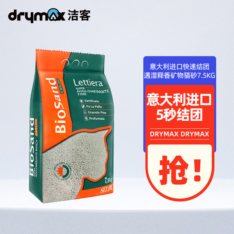 洁客(Drymax)意大利进口 Selim快速结团遇湿释香型矿物猫砂7.5KG