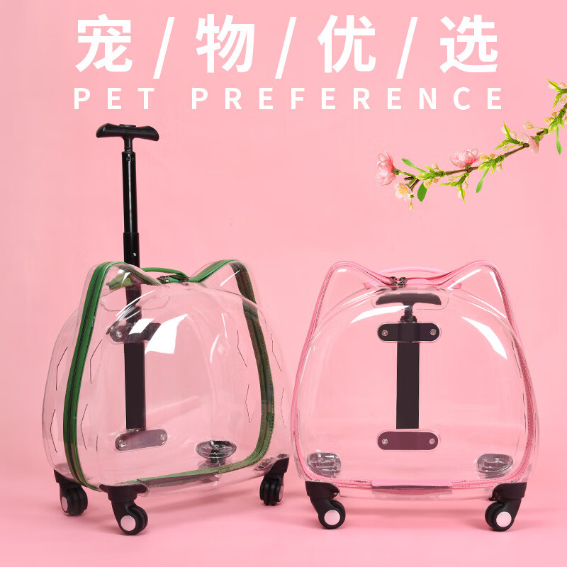 喀蔻宠物拉杆箱猫包大号便携外出猫笼透气可爱小型犬狗推车透明太空舱 绿色